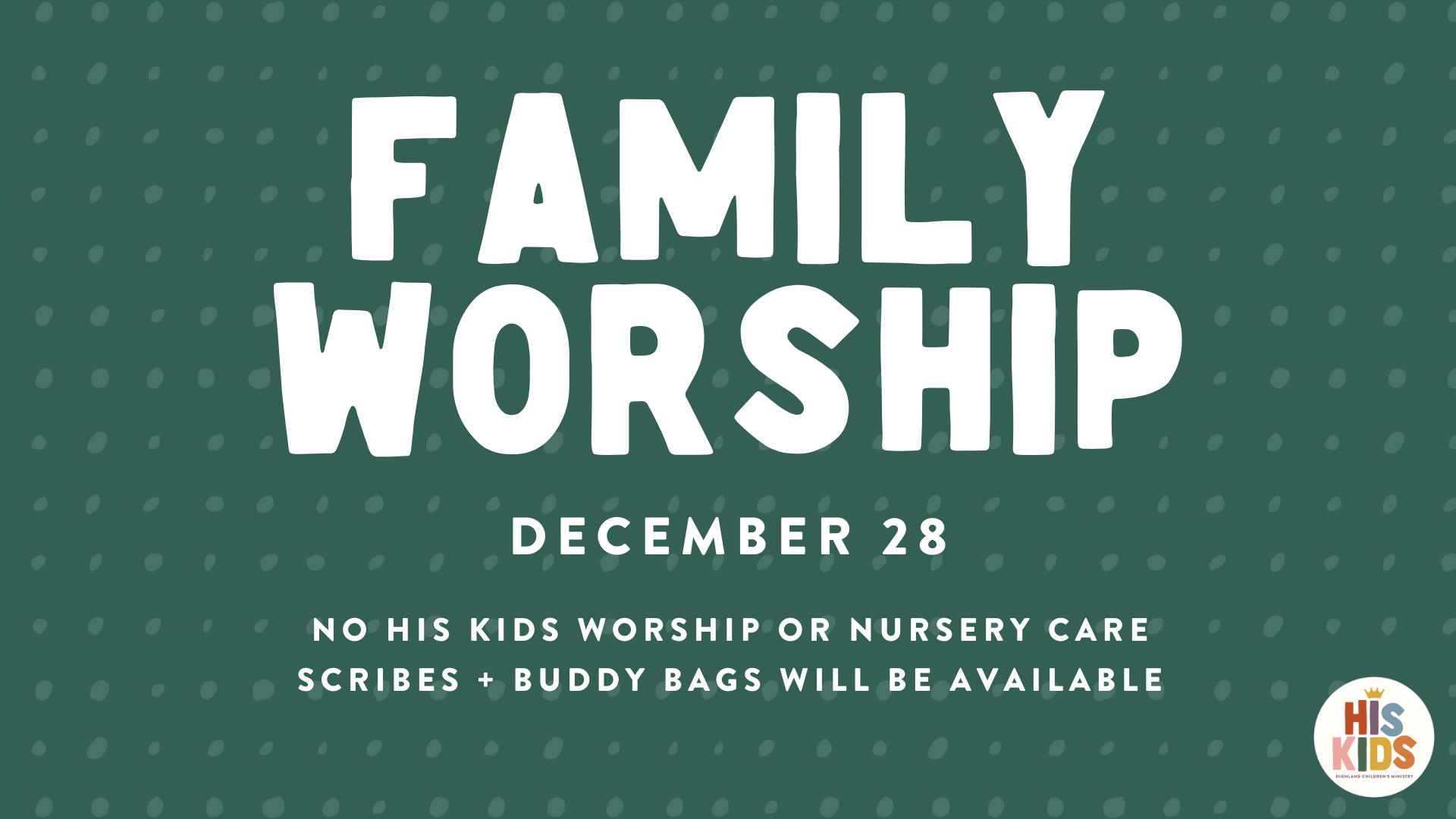 There will be no His Kids Worship or Nursery Care during blended worship this morning. We appreciate our volunteers who make both of these times possible each week and hope they enjoy a day to worship alongside their families.