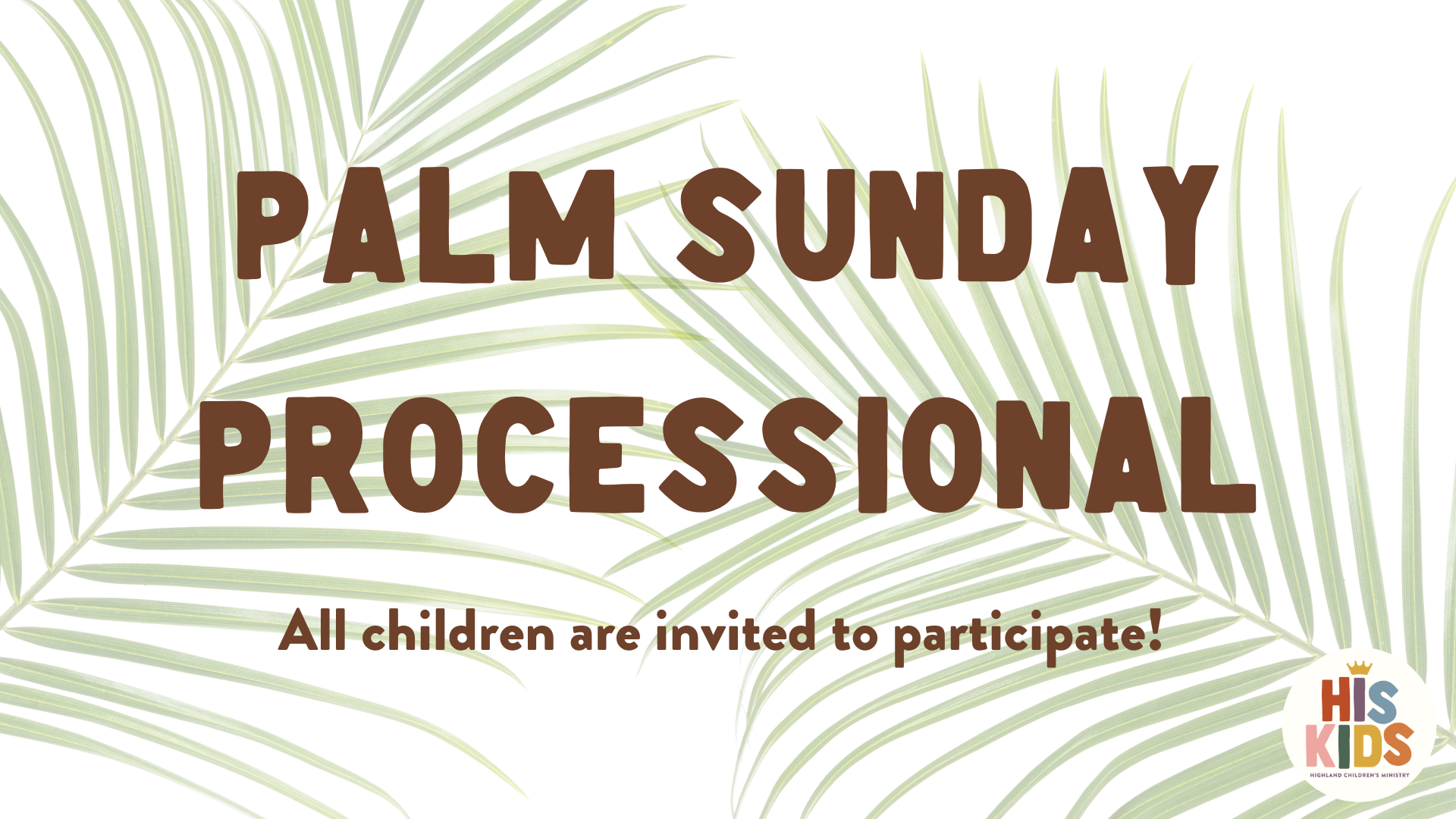 The processional will be at the beginning of both worship services. Grab a palm branch as you enter the auditorium. Children will sit with their parents until invited to the platform.