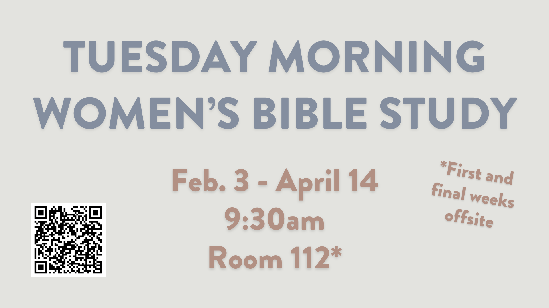 Join us for a Tuesday morning Women’s Bible Study beginning Feb. 3! Note: the first and final weeks of the semester will be a group brunch offsite (address to come).